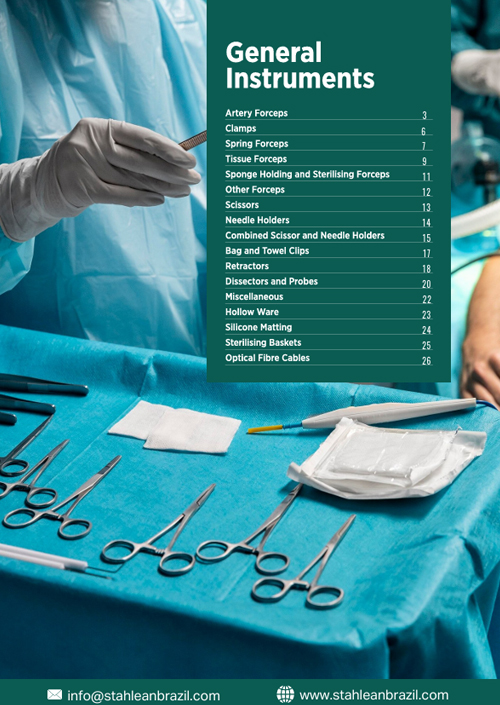 At Stahlean Brazil, we manufacture a comprehensive range of General Surgical Instruments designed for routine and advanced surgical procedures. Our instruments are widely used by surgeons, hospitals, and medical distributors worldwide for their precision, durability, and reliable performance.